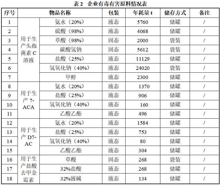 企业废水主要包括生产废水、生活污水和清净下水。其中生产废水包括头孢菌素C 生产线废水(包括菌渣干燥污冷凝水、吸附废水、高COD吸附顶洗废水、低COD吸附顶洗废水、吸附再生酸性废水、脱色再生酸性废水),甲醇精馏系统废水,碱液回收废水,7-ACA 合成生产线废水(包括纳滤精制废水 、精制柱再生废水、水洗离心废水、乙酸乙酯分层水),废液回收生产线废水(包括吸附废水、吸附再生酸性废水、脱色再生酸性废水),D-7ACA 合成生产线废水(包括纳滤精制废水、精制柱再生废水、水洗离心废水、乙酸乙酯分层水),设备清洗水,发酵尾气处理系统排水,车间地面清洗水,污水处理站废气处理系统排水,提炼车间纳滤浓缩透析水和7-ACA 车间纳滤浓缩透析水; 项目产生的清净下水主要包括软水制备废水 和冷却循环水外排水。